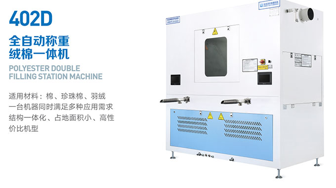 百聯展品:X型模塊化自動充絨機(2401X)、 402D全自動絨棉一體機