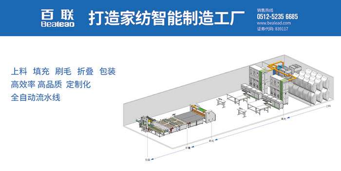 參展期間,百聯還將重磅推出“家紡自動化整體解決方案”這是百聯多年自主研發經驗積累、緊貼家紡領域客戶需求而提供的專業自動高效化整體解決方案,可以滿足羽絨被、枕芯、靠墊、睡袋等多種生產需求。