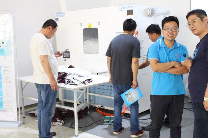 5月18日,百聯(lián)還在湖北武漢盤龍城佳海工業(yè)園首次向華中地區(qū)的客戶推介最新開發(fā)的4401X自動(dòng)充絨機(jī)。