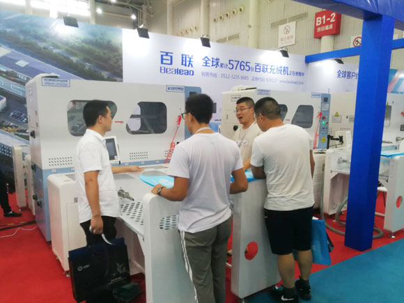 百聯一直重視參與以武漢為重點的華中紡織服裝產業轉型發展進程,以具有核心技術的纖維填充設備和高效的物流自動化解決方案為當地客戶提供所需的產品與服務。在本次展會期間,百聯主要展示了4401、2601、全新X機型、402D雙口絨棉一體機等升級版的充絨或充棉類設備,并針對當地電商的發展以及物流自動化的需要重點展示了505S型發貨包裝機。從現場反饋的情況看,這些產品滿足了當地用戶提高生產效率、促進生產升級的需求,受到了大家的積極關注。